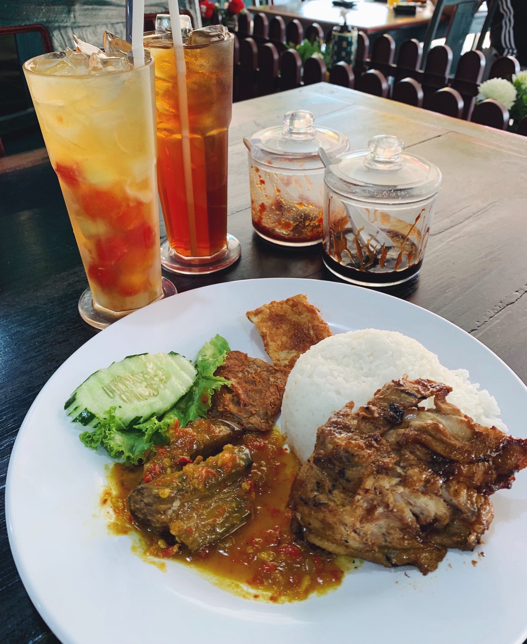 Cost myr30 for two people approx. Known for indonesian style ayam penyet with tempeh fried tofu and spicy sambal served alongside piping hot steamed rice. They used to have a self service pot of sambal. Dari luar dah nampak trademark wong solo iaitu halalan thayyiban.