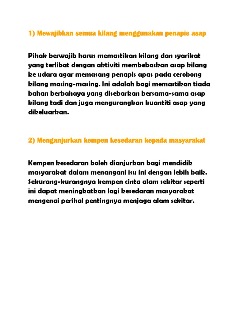 Bagi memastikan kita sentiasa menggunakan udara yang sihat kita perlu mengambil langkah bagi memperbaiki kualiti udara yang sedia ada.