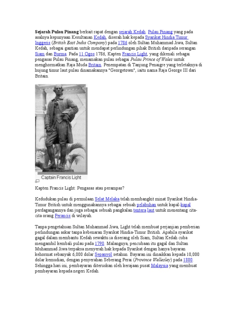 Perluasan kuasabritish di pulau pinang by. 4 6 sebelum tahun 1791 pulau pinang adalah sebahagian dari wilayah kedah kedah pula terletak di bawah naungansiam terkenal sebagai sebuah kuasa maritim syarikat hindia timur inggeris shti tertarik dengan kegemilangan kedah terutamanya di pulaupinang sebab sebab shti tertarik dengan kedah a kedah. Francis light menduduki pulau pinang secara tipu helah. Seorang pelayar yang bernama ragam menamakan sedemikian kerana inilah satu satunya pulau besar yang terasing yang ditemui beliau sewaktu berulang alik berdagang dari lingga ke kedah.