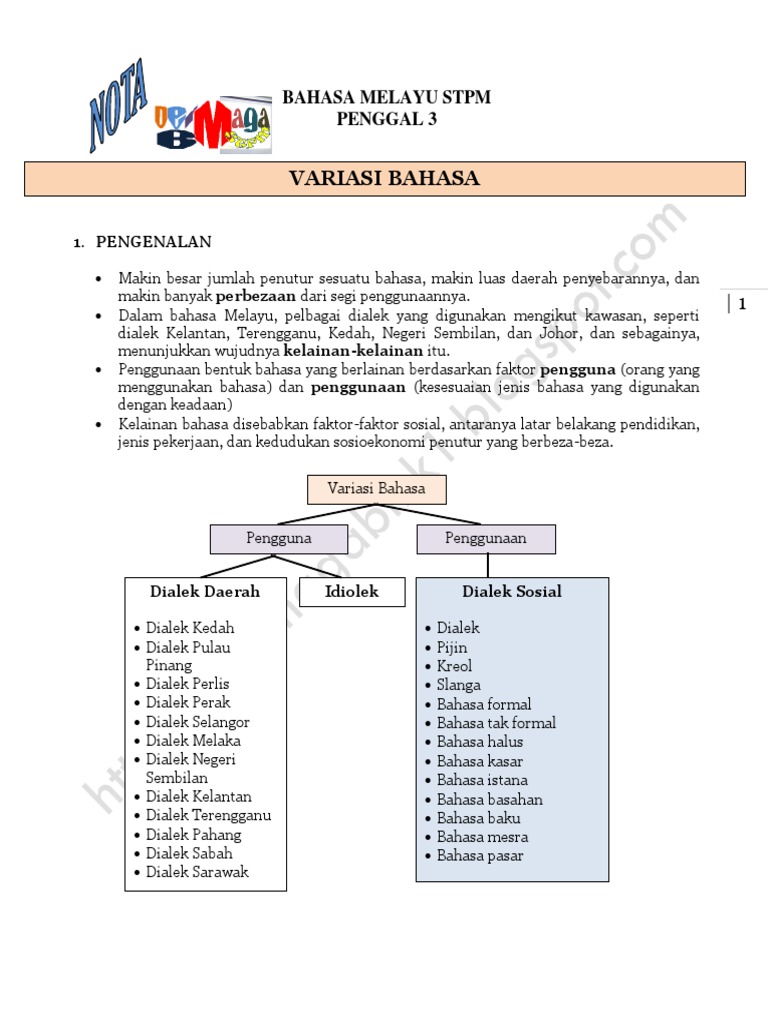 Nota Bahasa Melayu Stpm Penggal 3 Variasi Bahasa