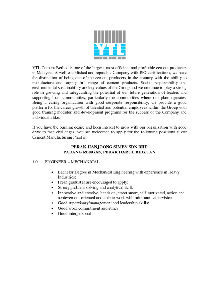 Ytl cement berhad we won the tender to provide the services of loading and hauling for ytl cement in 2005. Perak hanjoong simen sdn. The company was founded in 1980 and based in padang rengas perak malaysia. Perak hanjoong simen plant expansion project pl 2 for korea heavy industrial construction co.