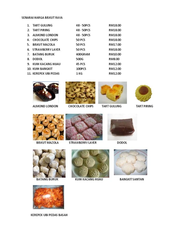 Senarai biskut raya 2019 salam tidak terasa masa berlalu dengan cepat tidak lama lagi kita menyambut bulan puasa semestinya rahel tidak ketinggalan untuk membuat biskut raya yang sedap sedap kepada semua pelanggan biskut raya home made by rahel sila pilih biskut kesukaan kamu semua biskut ni guna bahan bahan premium diadun guna pure butter tempahan dibuka kepada pelanggan yang berada. Berikut adalah senarai harga pasaran. Kunjungan keluarga sanak saudara sahabat handai pasti yang dinantikan semasa hari perayaan. Wednesday may 21 2014.